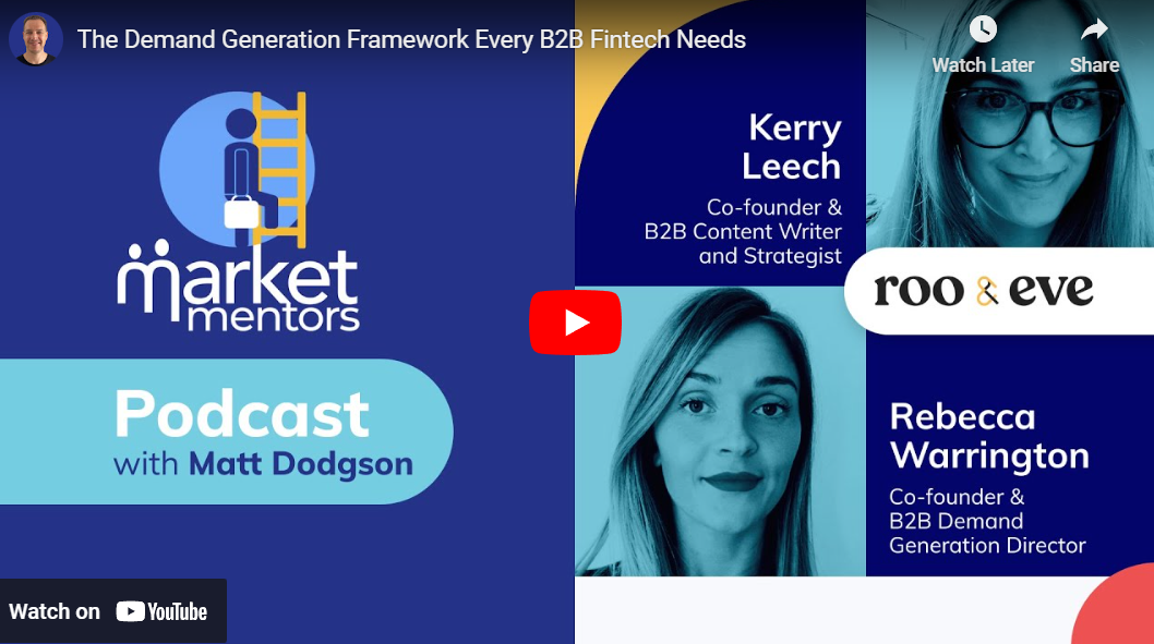 We recently shared this recipe with Market Recruitment’s Market Mentors Podcast – run specifically to help B2B fintechs to scale and grow in 2023 (and beyond). The focus was based on a new demand gen content framework that we built with Nottingham Business School (more on this here).